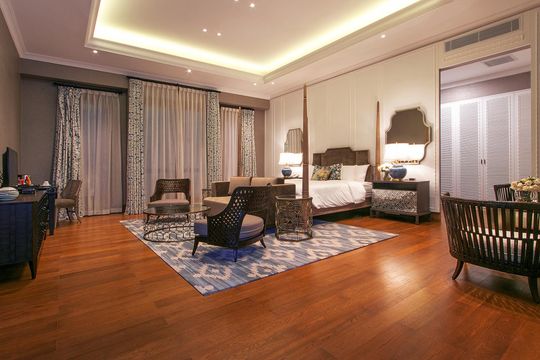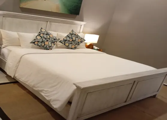 Kamar luas 52,20 m² dengan suasana pool side garden yang tenang. Dilengkapi tempat tidur 200 x 200 cm, TV 40 inch, sofa santai, meja rias, dan mini bar.