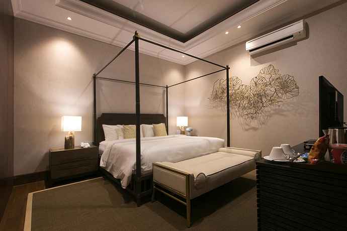 Kamar elegan seluas 24,81 m² dengan tempat tidur 200 x 200 cm, TV 40 inch, sofa Cleopatra, dan mini bar. Dilengkapi fasilitas minum seperti kopi, teh, gula, creamer, dan air mineral.