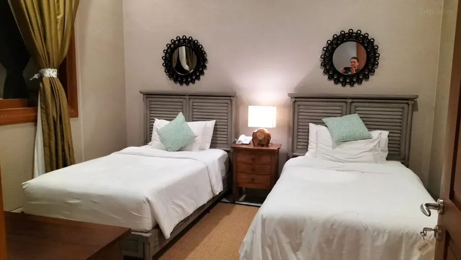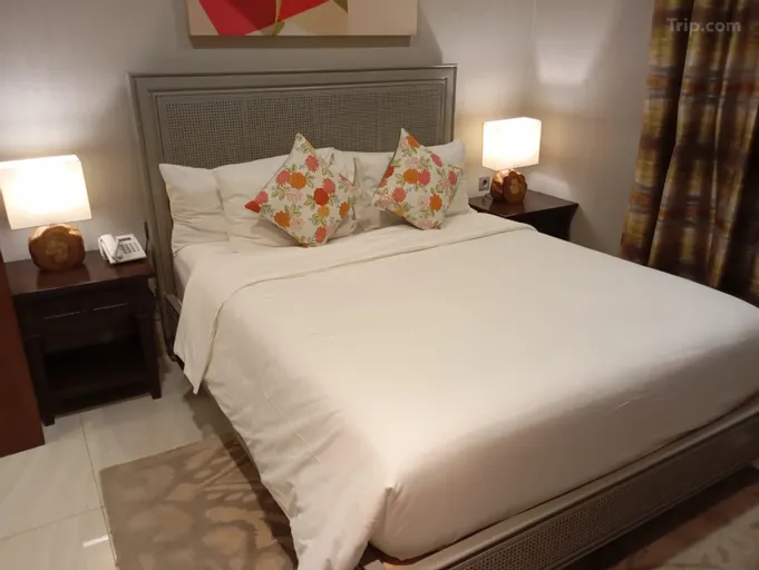Dilengkapi fasilitas kopi, teh, gula, creamer, serta air mineral. Kamar mandi modern dengan bathub, shower, dua wastafel, dan amenities lengkap. Pilihan ideal untuk kenyamanan praktis dengan nuansa hangat dan elegan.